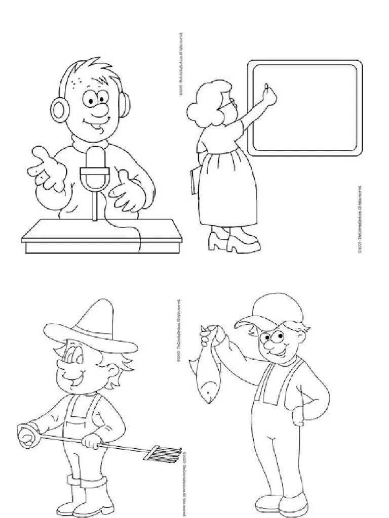 Prasekolah gambar mewarna tema pekerjaan tidak beruniform.